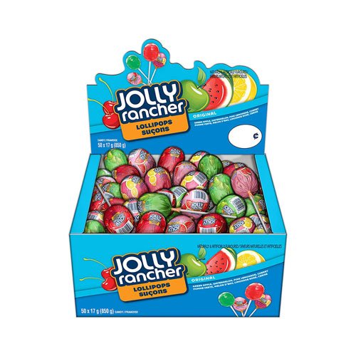 - One box of an assortment of 50 JOLLY RANCHER lollipops candy