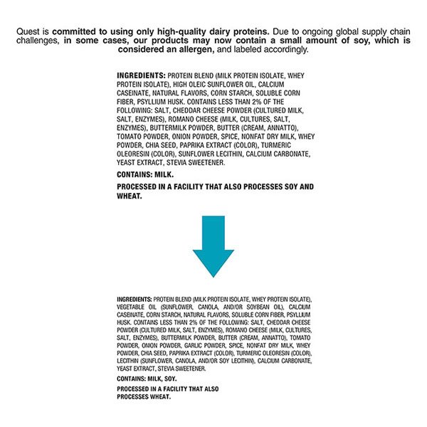 SALTY, SAVORY, CRUNCHY: Quest Nacho Cheese Tortilla Style Protein Chips are seasoned to perfection and contain no added soy ingredients