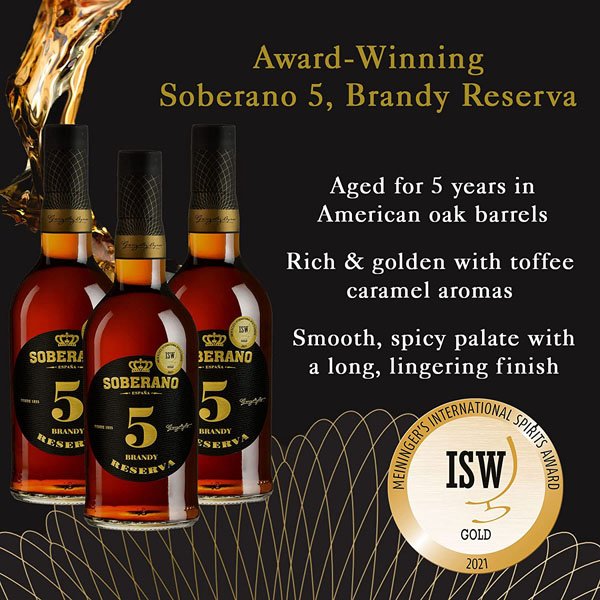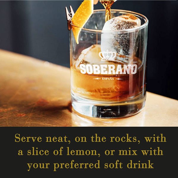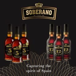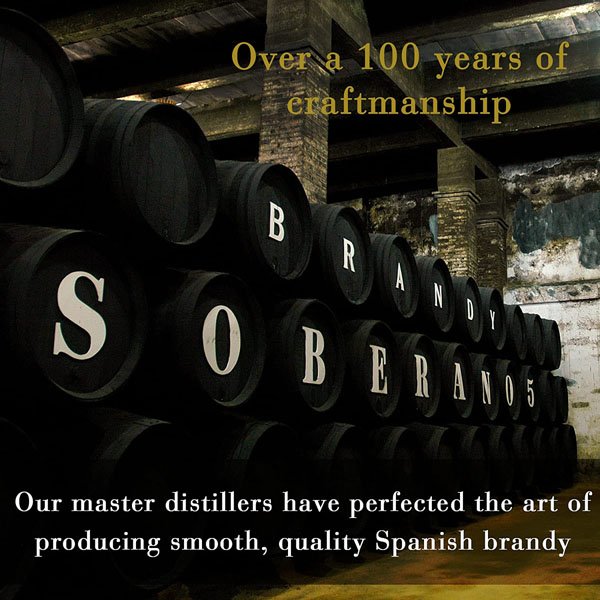With over 100 years of craftsmanship, Soberano is the true king of Spanish Brandy. Our master distillers have perfected the art of producing smooth, quality Spanish brandy. The result is a truly unique brandy renowned for its nut and toffee caramel aromas with hints of spiced fruit. Due to its exceptional ageing in Sherry casks for 5 years, previously containing Fino wines, our Brandy Soberano 5 is really special. Our ageing and maturation process gives Soberano 5 it’s distinctive colour, aroma, fragrance and pleasant taste. Enjoy the complex character and soft, velvety finish. Whether served neat, over ice, with a slice of orange, in a cocktail or with your favourite mixer, Soberano 5 (36% ABV) is the perfect gift for her & him. Soberano, capturing the true spirit of Spain.
