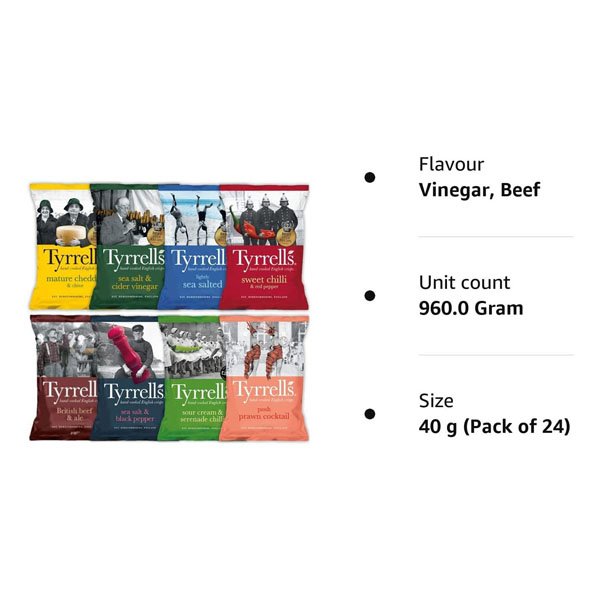 【2023 Limited Time Deals + Free Shipping】Tyrrells 8 Flavours Crisps Mixed Case – Case of 24