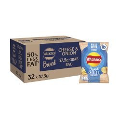 【2023 Limited Time Deals + Free Shipping】Walkers 37.5 g Baked Cheese and Onion Potato Crisps Box – 50 Percent Less Fat Suitable for Vegetarians – Case of 32 Bags