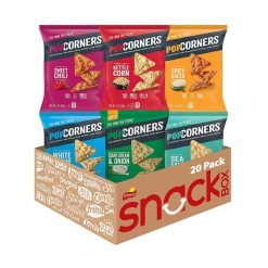 • 20 Pack of 1 oz PopCorners variety snack pack chips: (3) White Cheddar, (4) Kettle Corn, (4) Sea Salt, (3) Spicy Queso, (3) Sweet Chili, (3) Sour Cream & Onion single serve snack chips