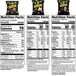 • Includes (20) 0.5 ounce Bags of White Cheddar popcorn, (12) 0.5 oz bags of Sweet and Salty Kettle Corn, and (8) bags of Movie Theater Butter popcorn