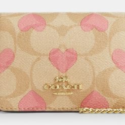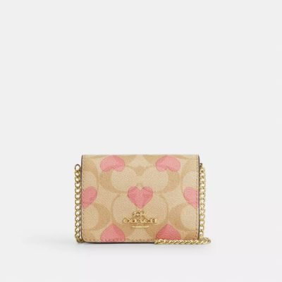 Boxed Mini Wallet On A -Chain In Signature Canvas With Heart Print