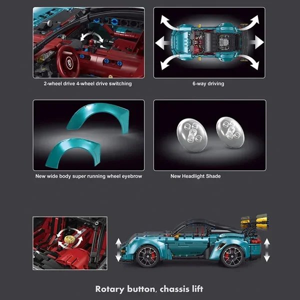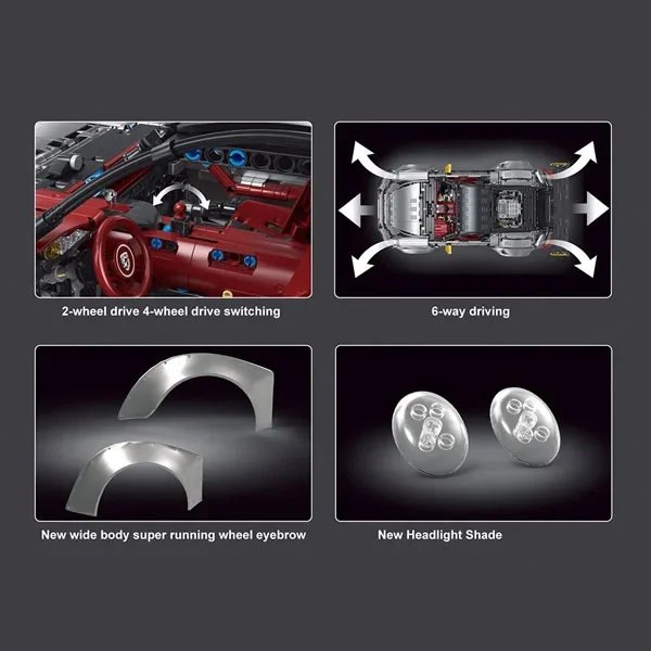 DIY dynamic version 1:8 Scale Super Car Building Kit with Electroplated Metal Parts Creative Building Toys for Adults (3389 Pieces)