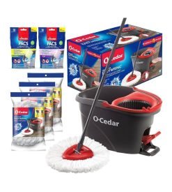 YXJ – O-Cedar EasyWring Microfiber Spin Mop & Bucket Floor Cleaning System + 2 Extra Refills, Red/Gray